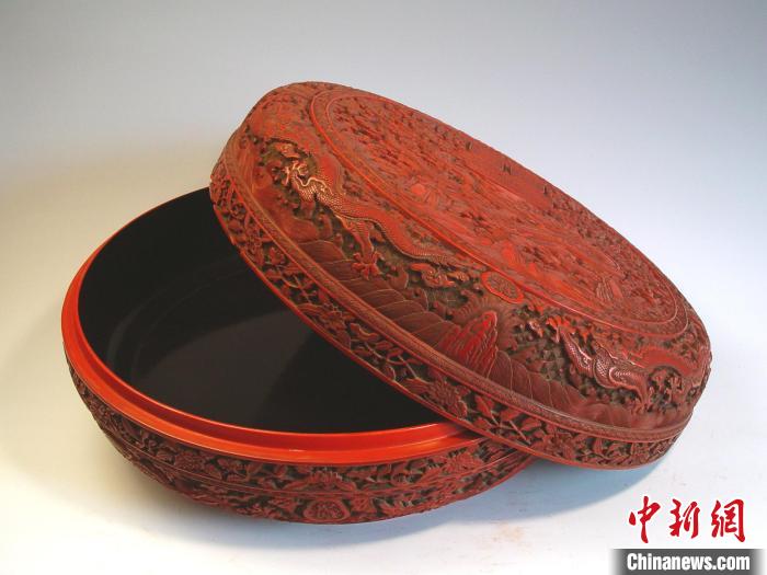 9月27日,“金匱其外 錦繡盛裝——沈陽(yáng)故宮院藏古代文物裝具展”在沈陽(yáng)故宮飛龍閣、翔鳳閣開展。圖為清乾隆款雕漆飛龍宴盒。沈陽(yáng)故宮博物院供圖