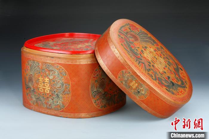 9月27日,“金匱其外 錦繡盛裝——沈陽(yáng)故宮院藏古代文物裝具展”在沈陽(yáng)故宮飛龍閣、翔鳳閣開展。圖為清黃漆描金彩繪龍鳳雙喜紋帽盒。沈陽(yáng)故宮博物院供圖