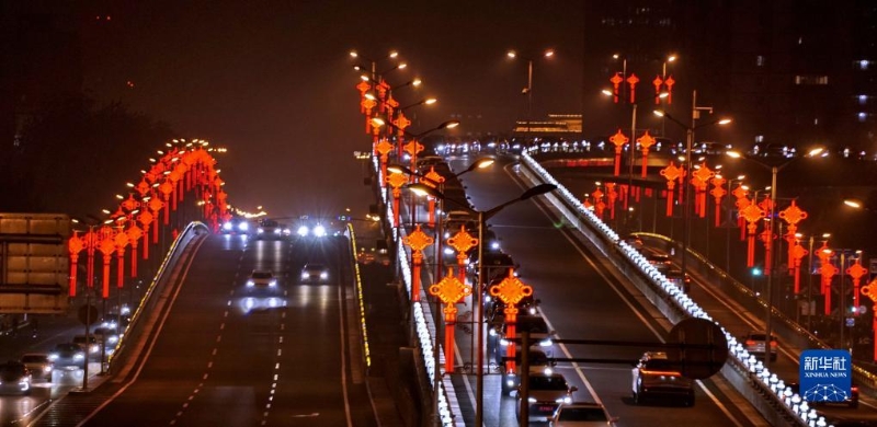9月26日晚在北京街頭拍攝的“中國結(jié)”景觀燈。