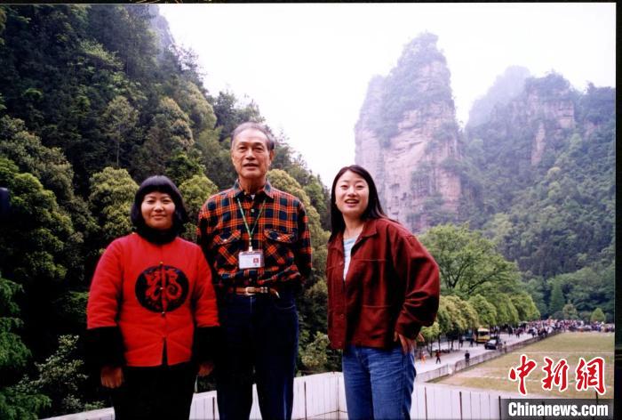 張嘉元的父親張輔仁(中)是張家界臺商協(xié)會的創(chuàng)始會長,曾獲得“張家界建市20周年旅游開發(fā)功臣”。(資料圖) 受訪者供圖
