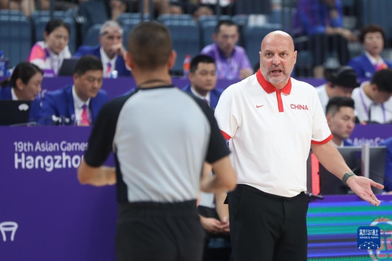 9月28日,中國隊(duì)主教練喬爾杰維奇(右)在比賽中與裁判交流。