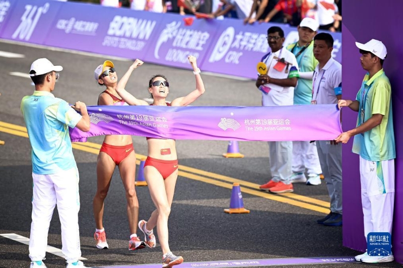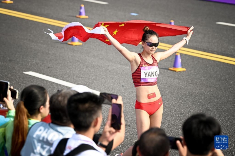當日,杭州亞運會田徑女子20公里競走決賽在杭州智慧新天地沿江景觀帶進行,中國選手楊家玉獲得冠軍,馬振霞獲得亞軍。
