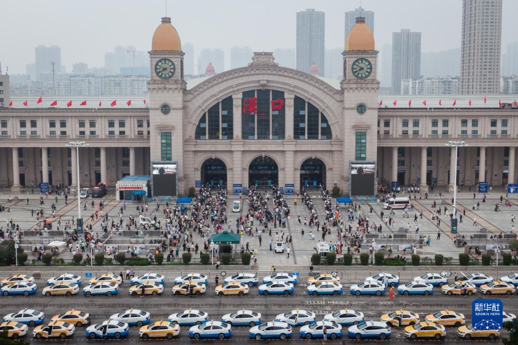 9月29日,旅客在漢口站排隊(duì)進(jìn)站(無(wú)人機(jī)照片)。