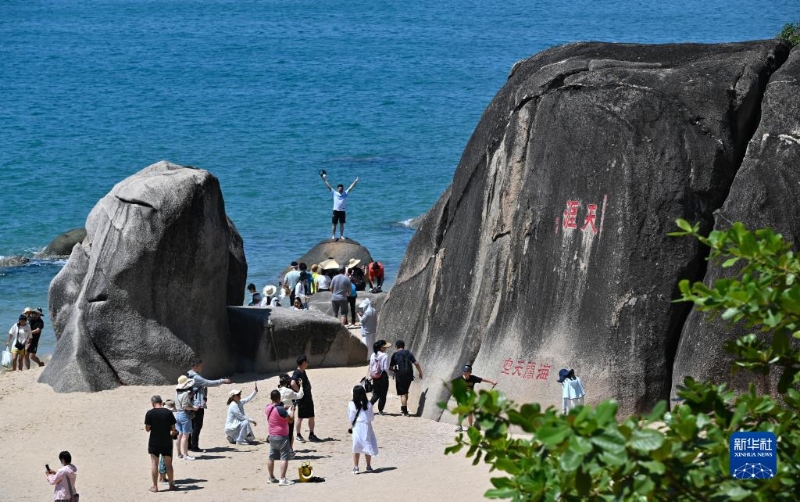 10月1日,游客在三亞市天涯海角游覽區(qū)游玩。