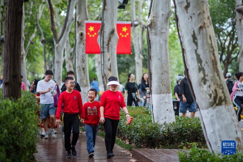 10月1日,游客在武漢市東湖景區(qū)游玩。