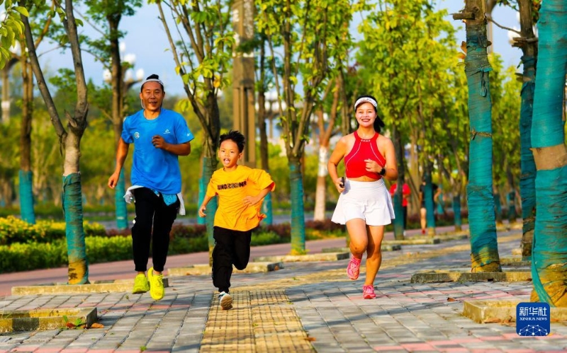 10月1日,人們在貴州省黔西市蓮城街道環(huán)城林蔭路上跑步。