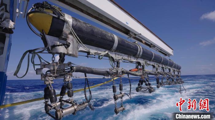 10月3日,中國(guó)自研海洋地震勘探裝備“海經(jīng)”首次實(shí)現(xiàn)超深水作業(yè),圖為“海經(jīng)”震源控制系統(tǒng)入海。 (中國(guó)海油 供圖)