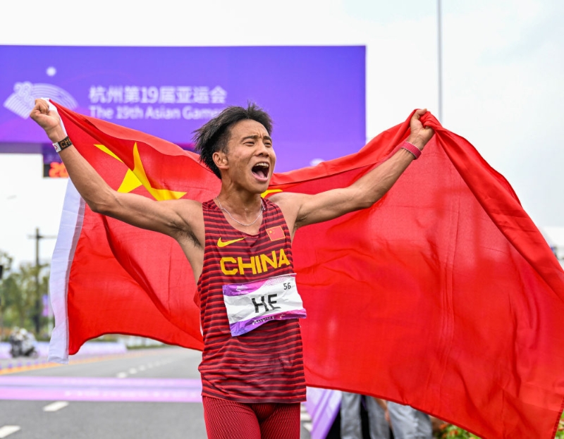 田徑最后一個比賽日,中國選手何杰繼今年打破塵封15年的男子馬拉松全國紀(jì)錄后,再度創(chuàng)造歷史。他以2小時13分02秒奪得中國隊亞運(yùn)參賽史上首枚男子馬拉松金牌。巴林則實現(xiàn)了在女子馬拉松項目上的亞運(yùn)“三連冠”。