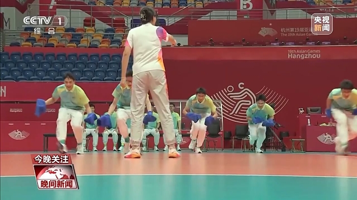 杭州亞運會蹦床項目保護員 馮萬里:比如說運動員要滾下網(wǎng)面的時候,這時候保護員會第一時間到場,把運動員緩沖和保護,讓他安全著陸。所以我們會非常關注運動員在上面的細微表現(xiàn),第一時間就會做出判斷。