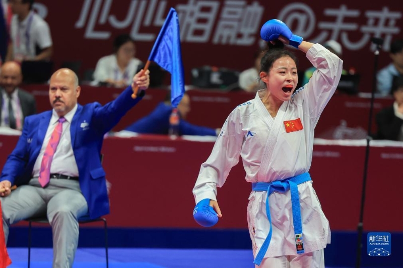 當(dāng)日,在杭州亞運(yùn)會(huì)空手道項(xiàng)目女子組手61公斤級(jí)決賽中,中國(guó)選手龔莉以9比0戰(zhàn)勝越南選手阮氏頑,獲得冠軍。