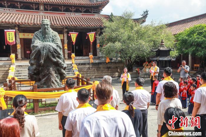 中新網(wǎng)漳州9月28日電 (林桂芬 曾晨 劉欽賜)28日,“同心同行 文脈‘薌’傳”2023年閩臺(tái)青少年紀(jì)念孔子誕辰2574周年暨文化交流活動(dòng)在福建漳州古城文廟舉行,閩臺(tái)青少年齊聚于此共同祭拜先師孔子。
