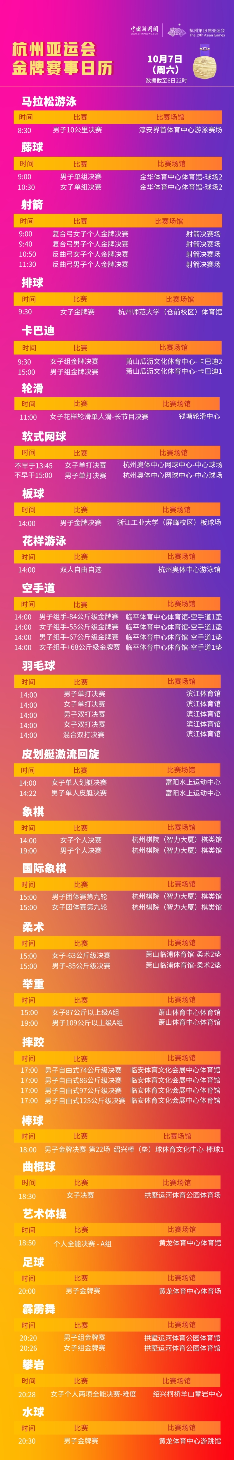 杭州亞運(yùn)會7日金牌賽程:中國隊沖擊200金大關(guān)