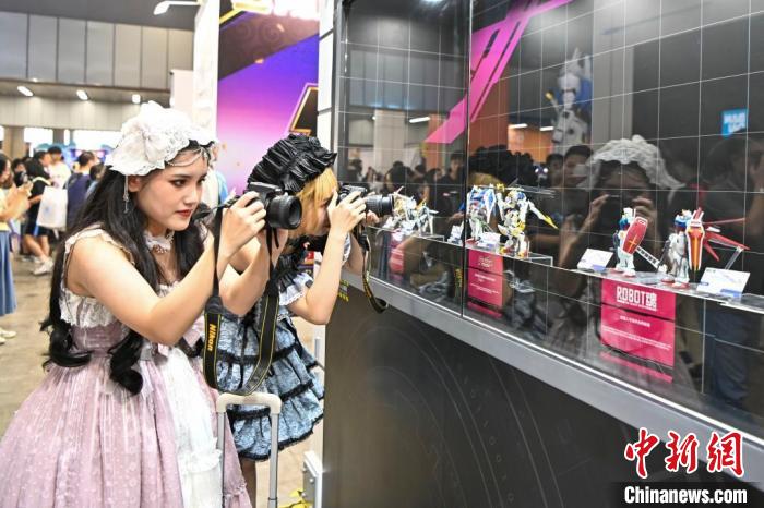 9月30日,中國國際漫畫節(jié)動漫游戲展在位于廣東省廣州市的保利世貿(mào)博覽中心開幕。圖為展覽中的高達(dá)模型吸引動漫愛好者。記者 陳驥旻 攝