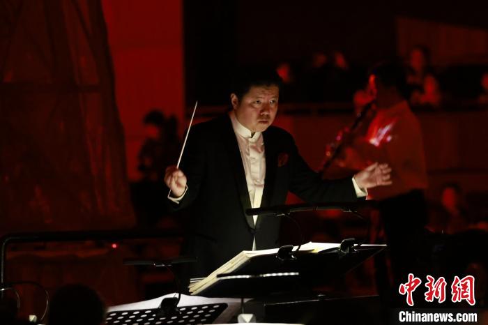 視覺交響《田園星球》演出現(xiàn)場,圖為廣州交響樂團音樂總監(jiān)黃屹。北京國際音樂節(jié)供圖