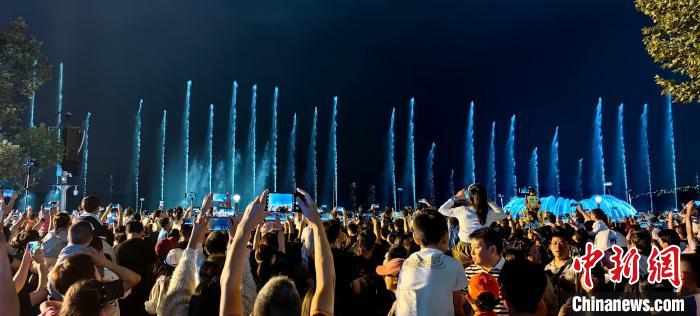 2023年中秋國慶假期里,杭州西湖音樂噴泉吸引游客爭相打卡。 江志清 攝