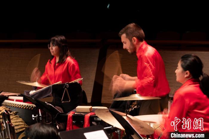 當(dāng)?shù)貢r(shí)間10月4日,第六屆紐約中國(guó)當(dāng)代音樂(lè)節(jié)在紐約林肯中心舉行巴德東西樂(lè)團(tuán)專場(chǎng)音樂(lè)會(huì)。圖為樂(lè)團(tuán)打擊樂(lè)手、來(lái)自匈牙利的丹尼爾·馬泰(中)在音樂(lè)會(huì)演奏中。中新社記者 廖攀 攝
