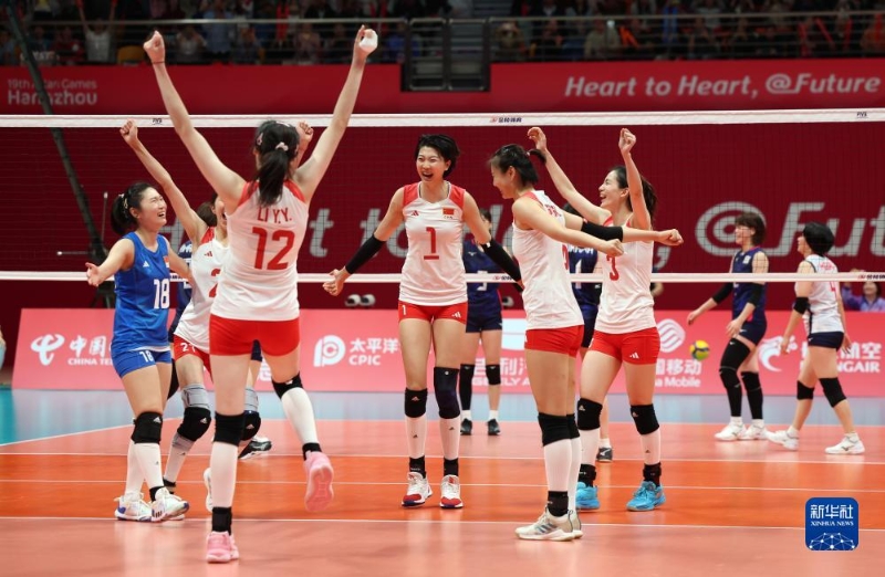 當(dāng)日,在杭州亞運(yùn)會女子排球決賽中,中國隊以3比0戰(zhàn)勝日本隊,獲得冠軍。