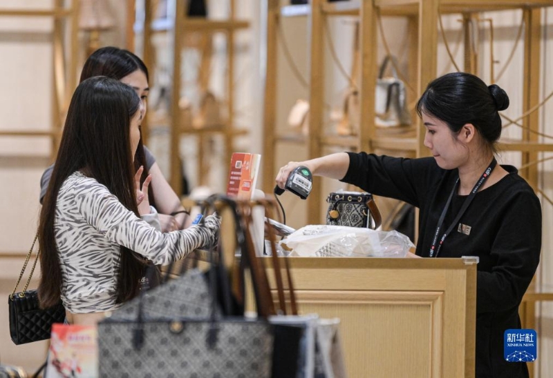 消費者在中免集團??谌赵聫V場免稅店購物(9月29日攝)。