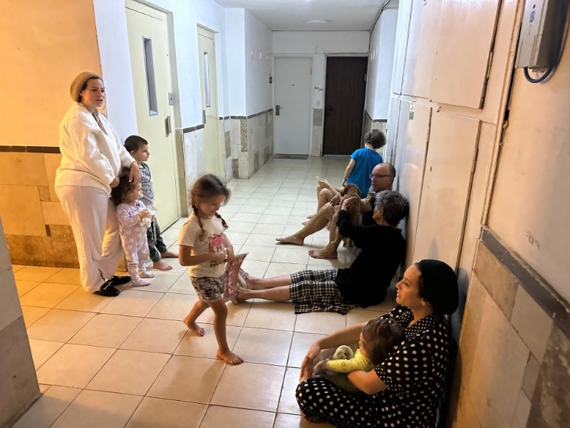 10月7日,防空警報(bào)響起后民眾在耶路撒冷一處建筑內(nèi)避難。新華社記者王卓倫攝