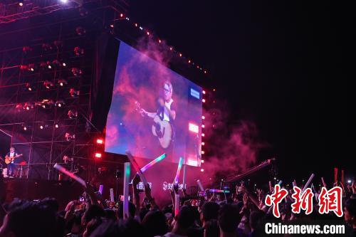 10月2日,江西南昌東湖區(qū),南昌星馳音樂節(jié)開幕。圖為羅大佑登臺(tái)獻(xiàn)唱,臺(tái)下眾多觀眾揮舞著熒光棒觀看演出。 記者 劉力鑫 攝