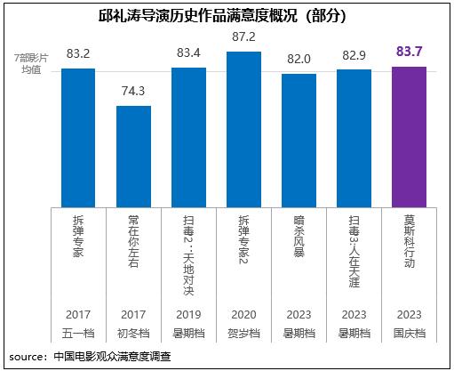 邱禮濤導(dǎo)演執(zhí)導(dǎo)的警匪動(dòng)作電影《93國(guó)際列車大劫案:莫斯科行動(dòng)》獲得觀眾滿意度評(píng)分83.7分,與檔期第一名和第二名僅差0.4分和0.1分;在滿意度調(diào)查過的邱禮濤導(dǎo)演七部影片中,《莫斯科行動(dòng)》滿意度處在平均水平之上。