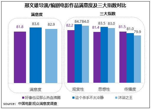 該片由邢文雄擔(dān)任監(jiān)制、編劇,與其導(dǎo)演/編劇的另外兩部電影作品(2020年賀歲檔上映的《沐浴之王》、2022年春節(jié)檔上映的《這個(gè)殺手不太冷靜》)相比,《好像也沒那么熱血沸騰》的觀賞性、思想性得分略低,但傳播度為三部影片中最高。