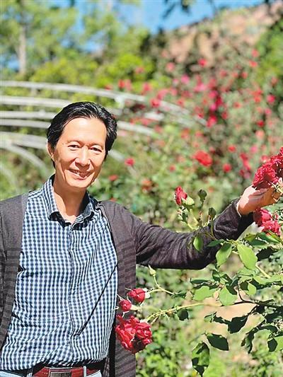 圖為李賢治在展示莊園種植的花卉。