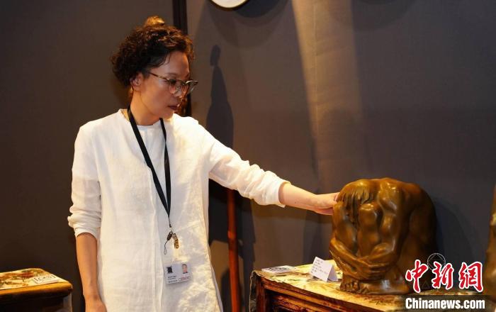 圖為陜西省雕塑院職業(yè)雕塑家張齡予在香港“典亞藝博”同個(gè)人作品合影。受訪者供圖