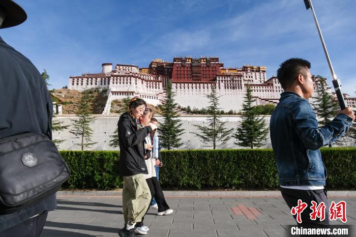 圖為“雙節(jié)”期間,游客路過布達拉宮。江飛波 攝