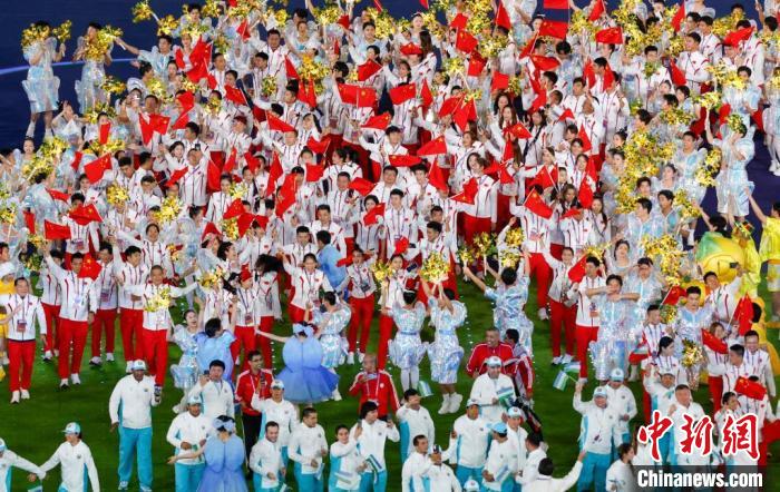 10月8日晚,杭州第19屆亞運會閉幕式在杭州奧體中心體育場舉行。圖為中國代表團入場。 記者 韓海丹 攝