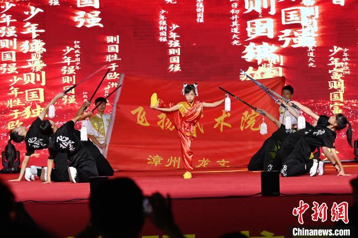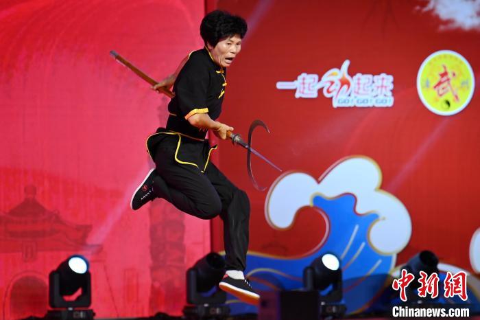 圖為龍文區(qū)田豐武館《威武何陽》表演。中新網(wǎng)記者 張金川 攝
