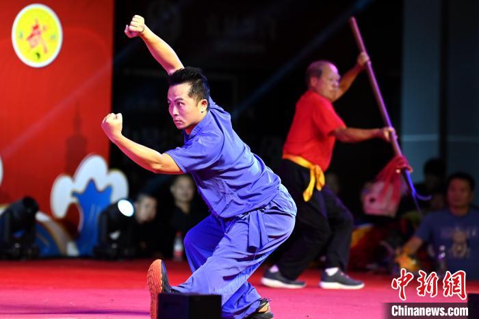 圖為龍文區(qū)龍和堂《龍拳對練》表演。中新網(wǎng)記者 張金川 攝
