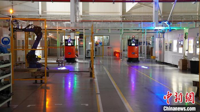 中新社記者近日探訪位于浙江嘉興的敏實(shí)集團(tuán),在其未來工廠里,機(jī)器人于“熄燈車間”來回穿梭。 中新社記者 楊程晨 攝