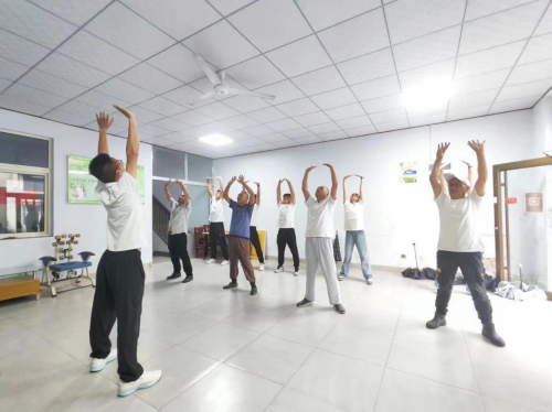 八段錦健身教學(xué)的活動(dòng)現(xiàn)場(chǎng),志愿者們一邊向旭升村活動(dòng)中心的老人們講解八段錦口訣,一邊示范八段錦的基本動(dòng)作要領(lǐng),并耐心細(xì)致地將八段錦的每一個(gè)動(dòng)作步法、手型及運(yùn)氣逐一進(jìn)行分解教學(xué),每做完一式后,志愿者們都會(huì)收集村民的反饋意見(jiàn),交給村民們?cè)诰毩?xí)過(guò)程中的不足之處,因?yàn)椴糠执迕衲挲g較大,志愿者告訴村民們要依據(jù)自己的身體情況量力而行,根據(jù)自己的身體狀況聯(lián)系動(dòng)作。村民們表現(xiàn)出極大的熱情。在志愿服務(wù)隊(duì)的示范下,陸續(xù)有村民前來(lái)加入,與志愿者們一起練習(xí)八段錦。學(xué)習(xí)過(guò)程中志愿者們及時(shí)與老人交流,觀(guān)察所學(xué)動(dòng)作是否規(guī)范,糾正動(dòng)作細(xì)節(jié)。練習(xí)結(jié)束后,村民們紛紛表示八段錦姿勢(shì)簡(jiǎn)單、容易上手,每招都是“一味良藥”,做完八段錦整個(gè)人輕快不少,希望有更多機(jī)會(huì)學(xué)習(xí)。
