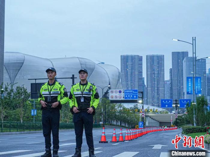 開(閉)幕式當日,杭州交警全力以赴做好交通安保工作。杭州交警供圖
