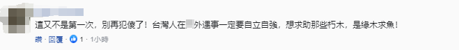 對此,有島內(nèi)網(wǎng)民在臺媒評論區(qū)留言表示,這又不是第一次,別再犯傻了!臺灣人在島外遇事一定要自立自強(qiáng),想求助那些朽木,是緣木求魚!↓