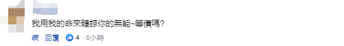 而臺(tái)外事部門針對(duì)此事的回應(yīng),也引起一些島內(nèi)網(wǎng)民吐槽:“我用我的命來(lái)體諒你的無(wú)能,等價(jià)嗎?”↓