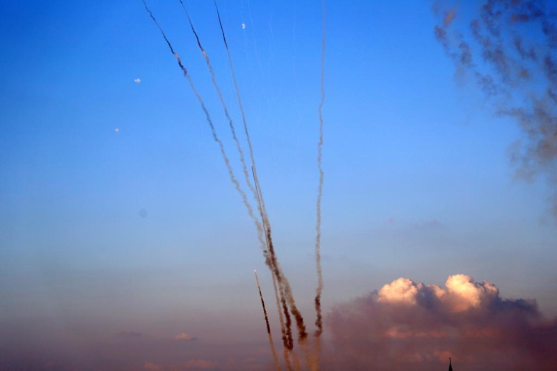 這是10月10日在加沙城拍攝的向以色列發(fā)射的火箭彈。新華社發(fā)(里澤克·阿卜杜勒賈瓦德攝)