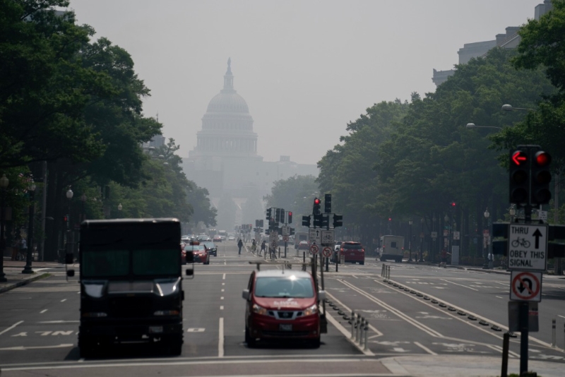 6月29日,在美國首都華盛頓,國會(huì)大廈籠罩在煙霧中。新華社記者劉杰攝