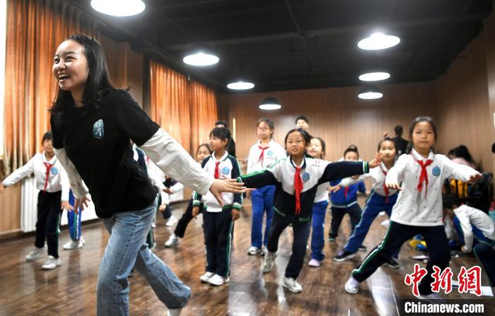 劇組演員帶領(lǐng)探班的小記者們體驗劇情。王曉溪攝