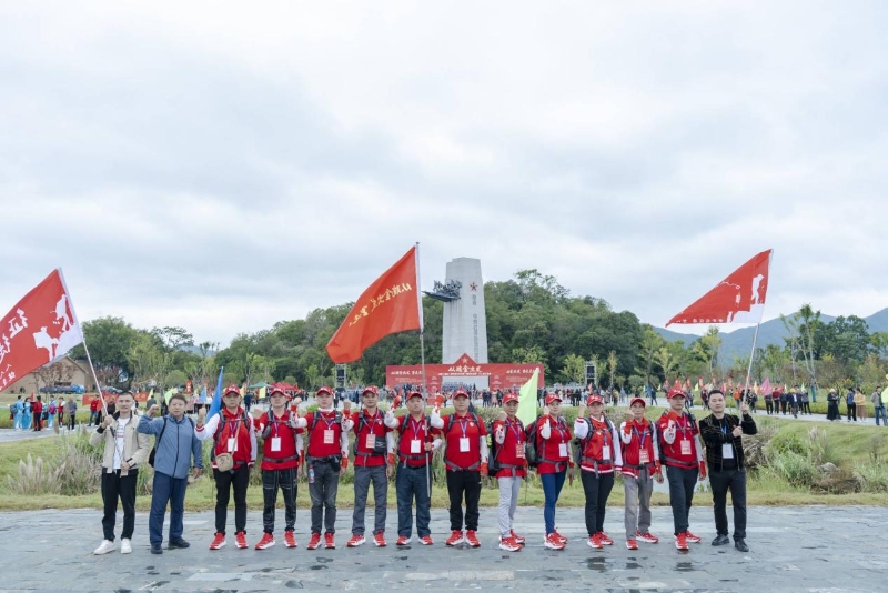 2023年10月10日,鳴揚(yáng)征徒的幾十位隊(duì)員在總指揮李耀亮的帶領(lǐng)下分別在瑞金、興國(guó)、會(huì)昌等地開啟出征儀式。當(dāng)日恰逢瑞金“第四屆長(zhǎng)征節(jié)及重走長(zhǎng)征路千人徒步”活動(dòng)開啟。瑞金長(zhǎng)征第一山云石山秋高氣爽、人山人海、紅旗招展、歌聲嘹亮。此次活動(dòng)得到了瑞金等地政府的大力支持。瑞金市副市長(zhǎng)謝江溪同志親自主持并致辭。市領(lǐng)導(dǎo)為徒步隊(duì)員授旗,鳴揚(yáng)征徒總指揮李耀亮莊嚴(yán)接旗并發(fā)表了鏗鏘有力的即興演講,同時(shí)表達(dá)了路雖遠(yuǎn),行則將至;事雖難,做則必成堅(jiān)定信念。