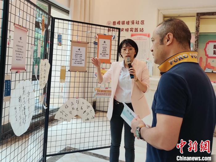 10月10日,桂溪社區(qū)黨委書記、居委會(huì)主任陳雯靖向媒體介紹兩岸兒童創(chuàng)作的詩(shī)詞。中新社記者葉秋云攝