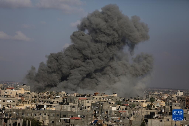 10月11日,在加沙地帶南部城市拉法,以色列空襲后升起濃煙。