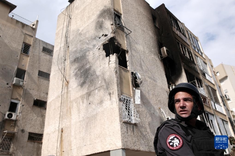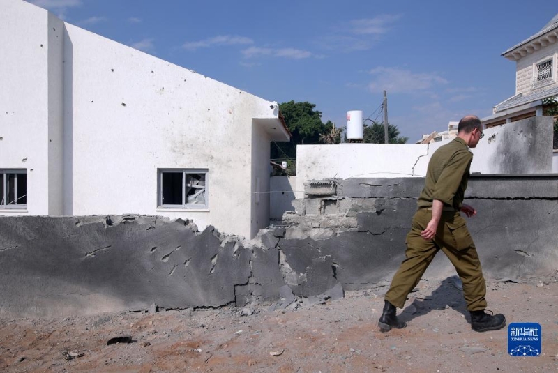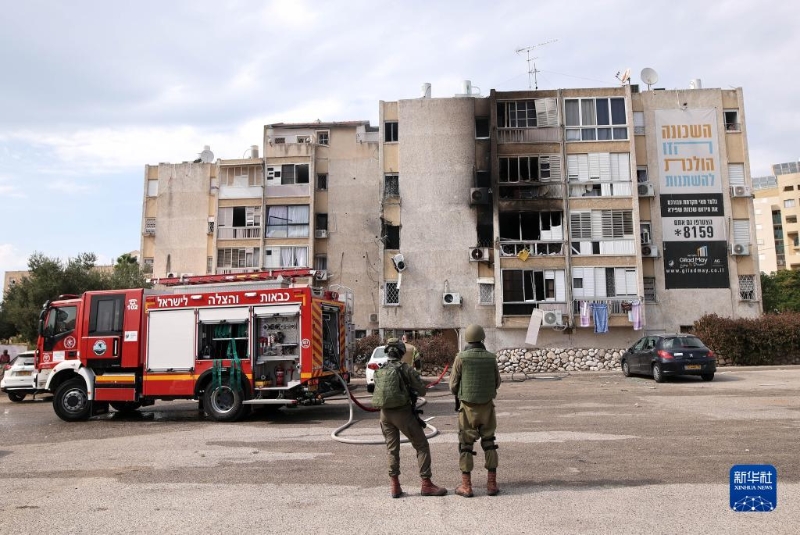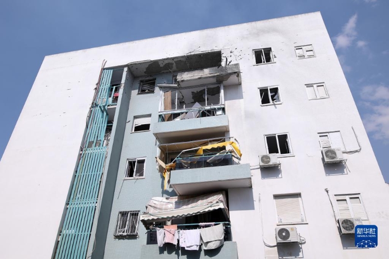 這是10月11日在以色列阿什凱隆拍攝的遭加沙火箭彈襲擊的建筑。