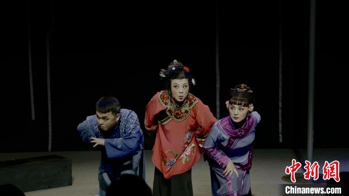 10月7日,中國戲劇“梅花獎(jiǎng)”獲得者吳晶晶(右一)在小劇場高甲戲《阿搭嫂》中飾演阿搭嫂?!?廈門市金蓮升高甲劇團(tuán)供圖)