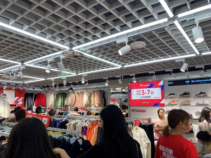 在武漢首創(chuàng)奧特萊斯,吳琳發(fā)現(xiàn)運(yùn)動(dòng)品牌店內(nèi)人群已是摩肩接踵,她從試衣間出來(lái)的時(shí)候,周圍排起了長(zhǎng)隊(duì),運(yùn)動(dòng)鞋區(qū)的長(zhǎng)椅上,也坐滿了人。