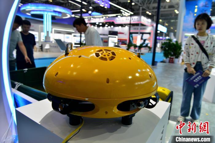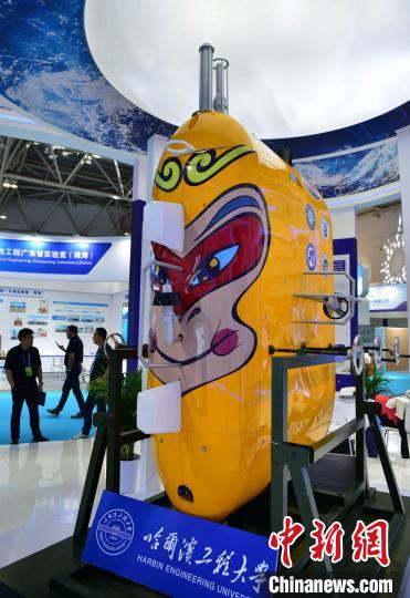 圖為10月13日,博覽會上展示的目前世界下潛深度最深(10896米)的無人無纜潛水器(UUV)——“悟空號”全海深(UUV)?!埍?攝