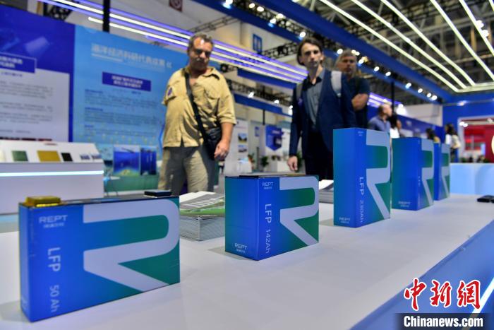 圖為10月13日,博覽會上展示的船用電池受關注。 張斌 攝