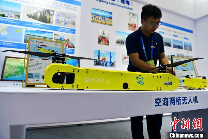 圖為10月13日,博覽會上展示的空海兩棲無人機?!埍?攝