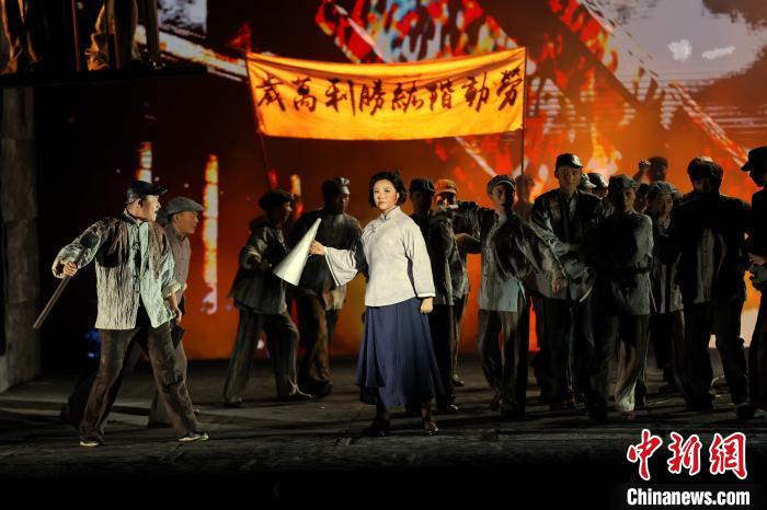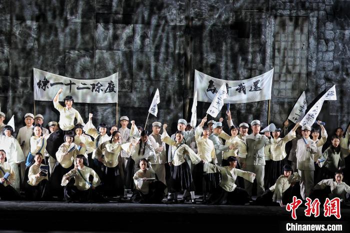中新網(wǎng)北京10月13日電 (記者 應(yīng)妮)民族歌劇《英·雄》12日晚在北京大學(xué)百周年紀(jì)念講堂上演。